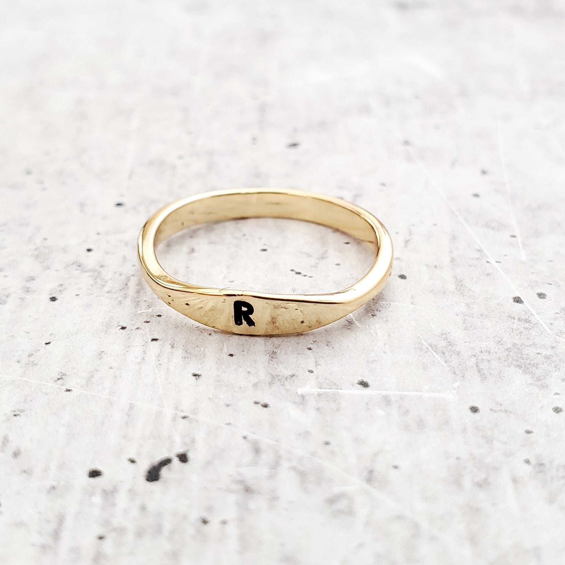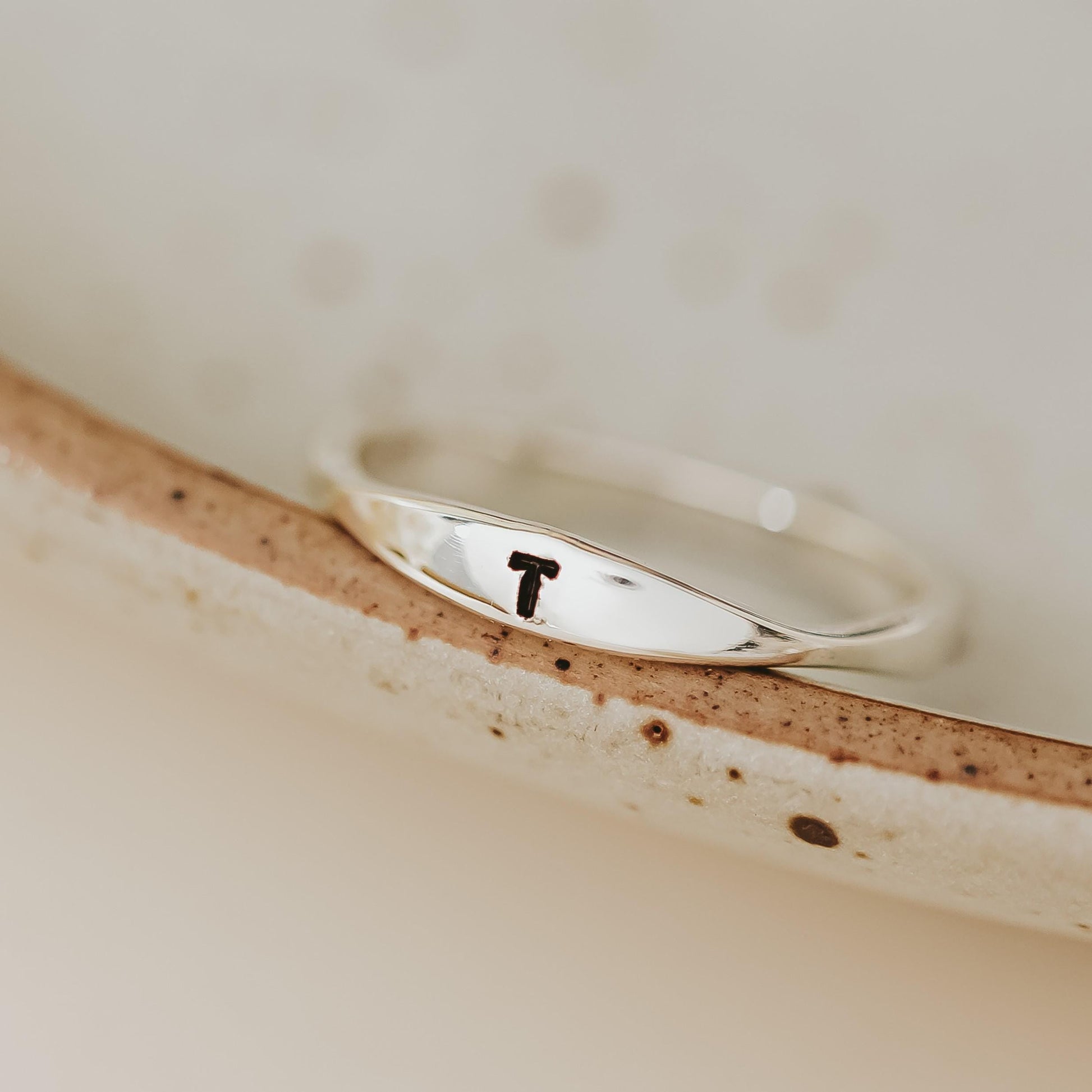 This minimalist finger band is hand stamped with your single upper case initial. It's a great, understated jewelry piece to accessorize and wear everyday.