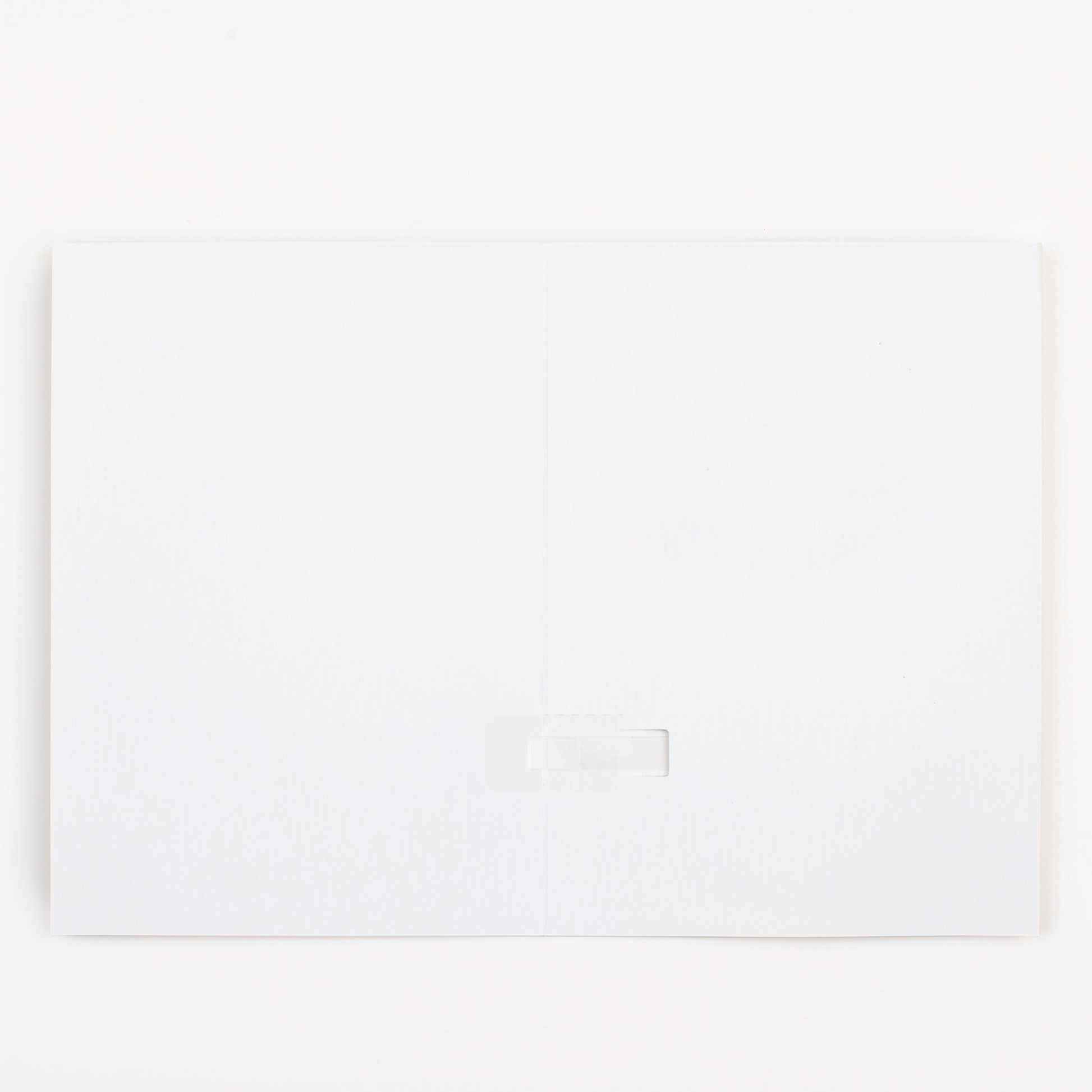 - Insert the card into the envelope; pull the tab from the spine to arm it.