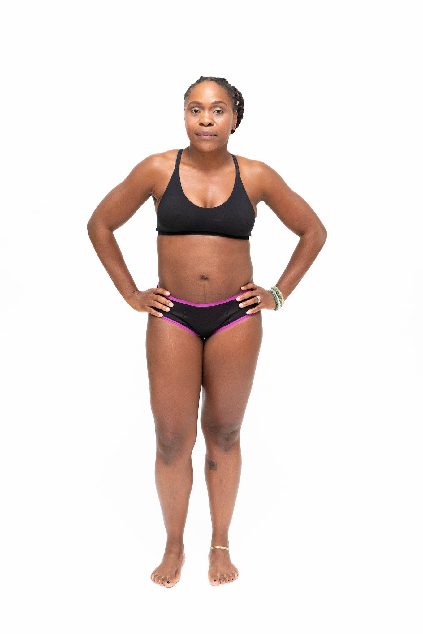 - The Hazel Hipster Full features a bikini type cut with a modest leg line and sporty style