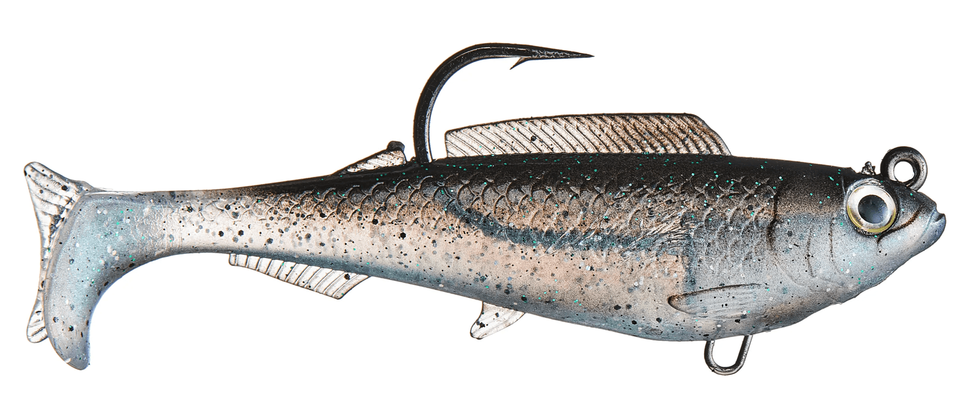 The Herculez 4" Bad Shad swimbait is engineered for big fish targeting with a curved paddletail that delivers a lifelike swim action and natural appearance. Constructed from durable 10X Tough ElaZtech, this pre-rigged swimbait stands up to long fishing sessions and multiple strikes. Its smart design includes a ventral eyelet on the jighead, enabling the addition of a second belly hook for improved hooking potential.