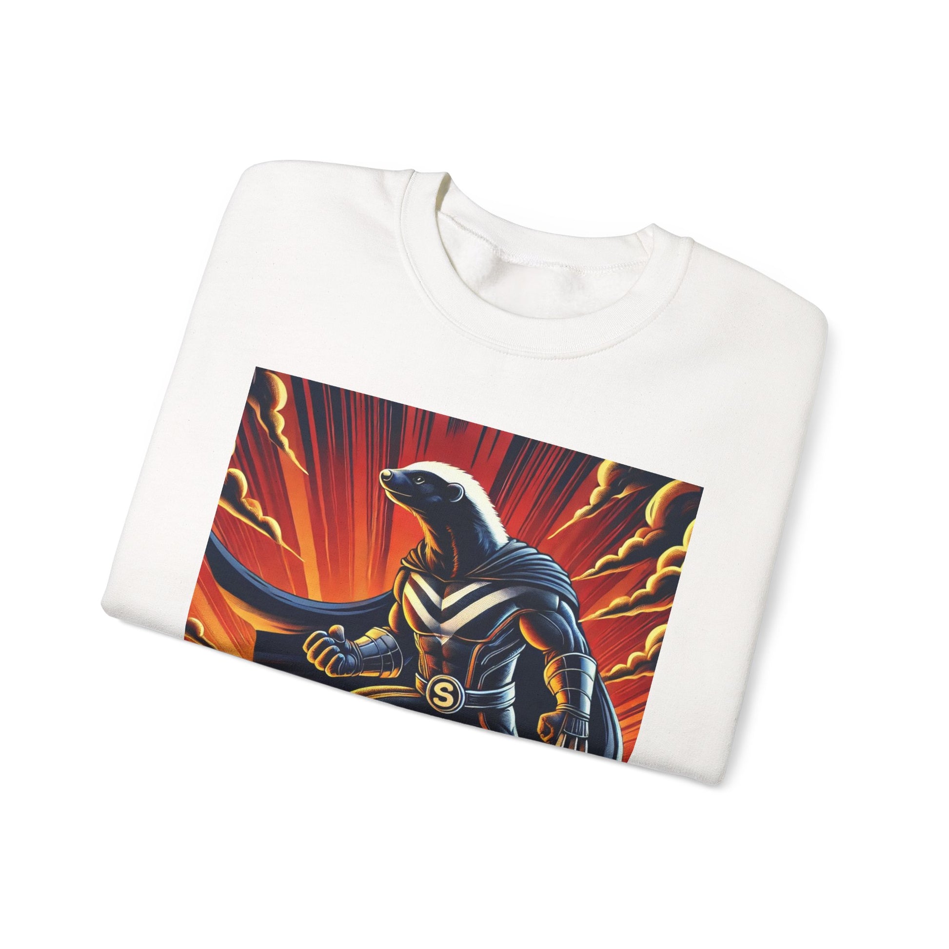 Honey Badger Super Hero Sweatshirt, Graphic Crewneck Jumper, Animal Lover Gift, Funny Hoodie, Wildlife Shirt