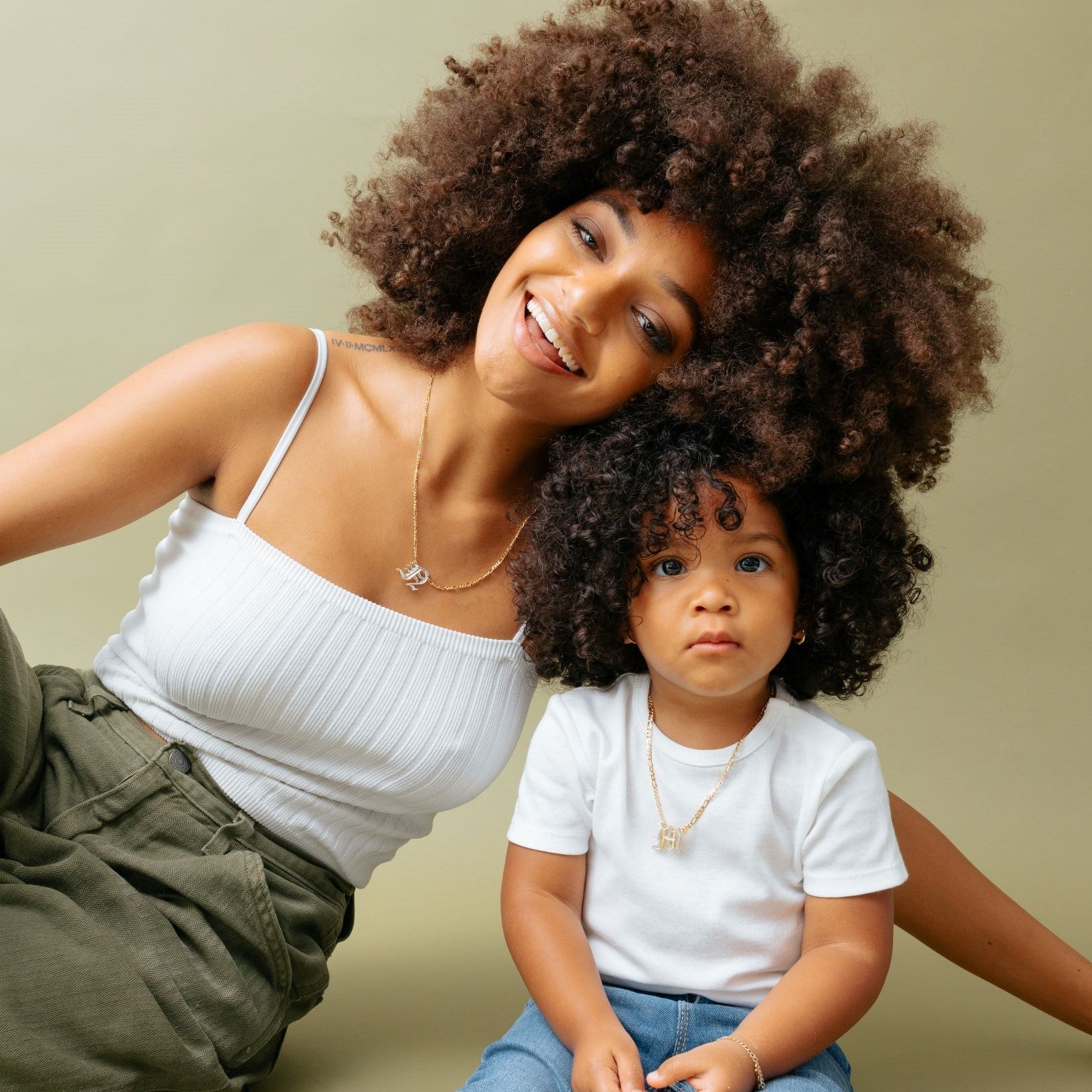 The child is 2 years old and is wearing a 16" inch, Figaro chain.