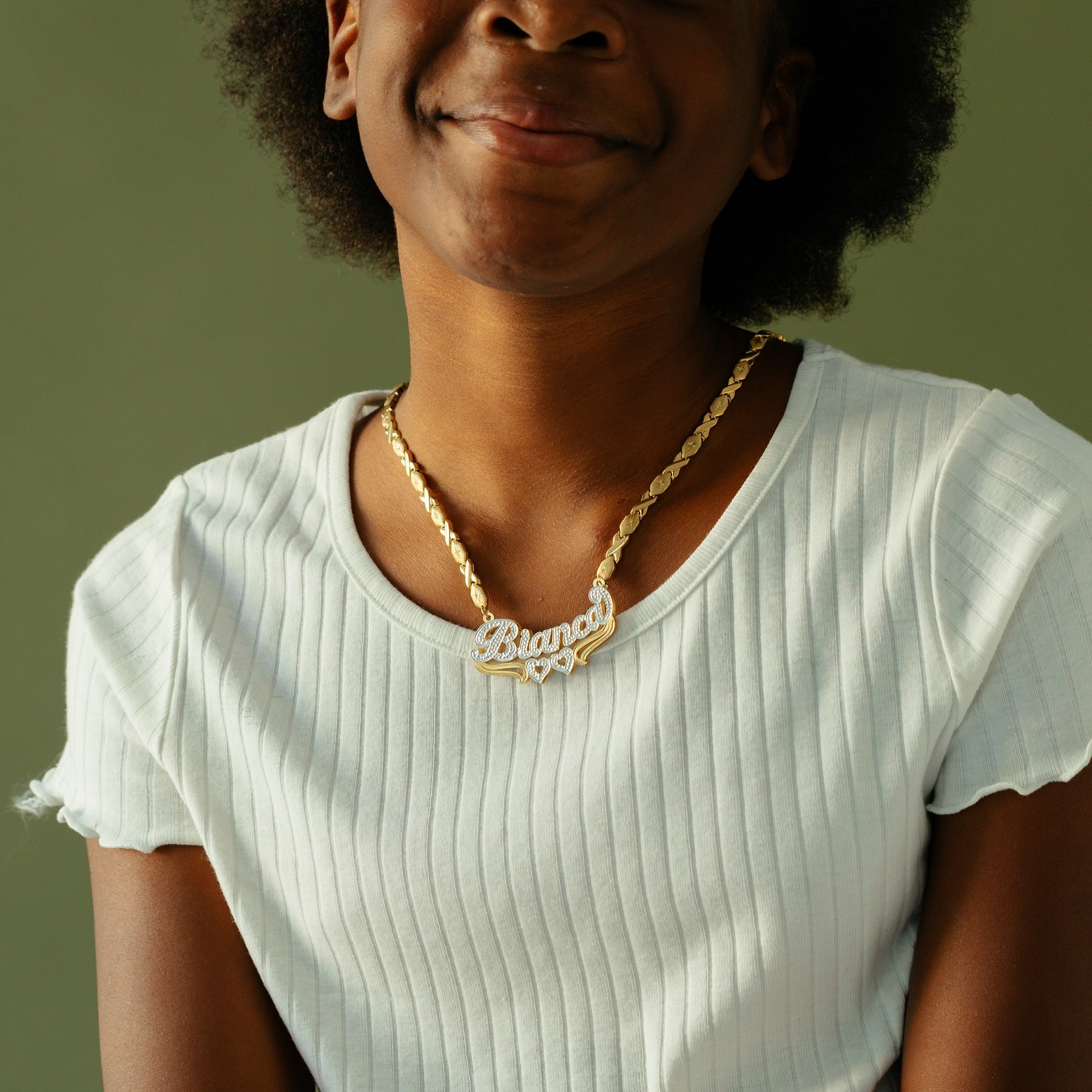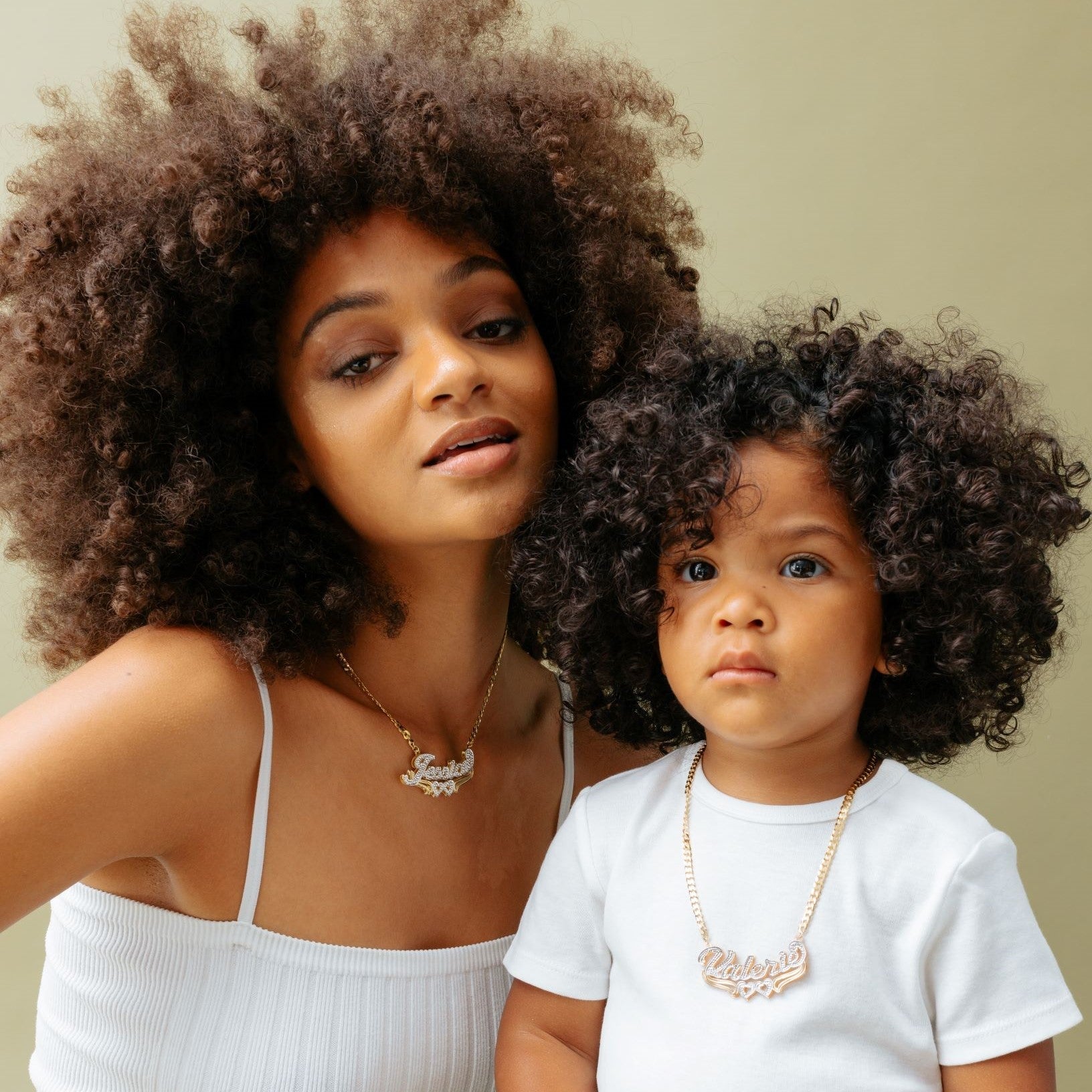 The child is 2 years old and is wearing a 16" inch, Cuban chain.