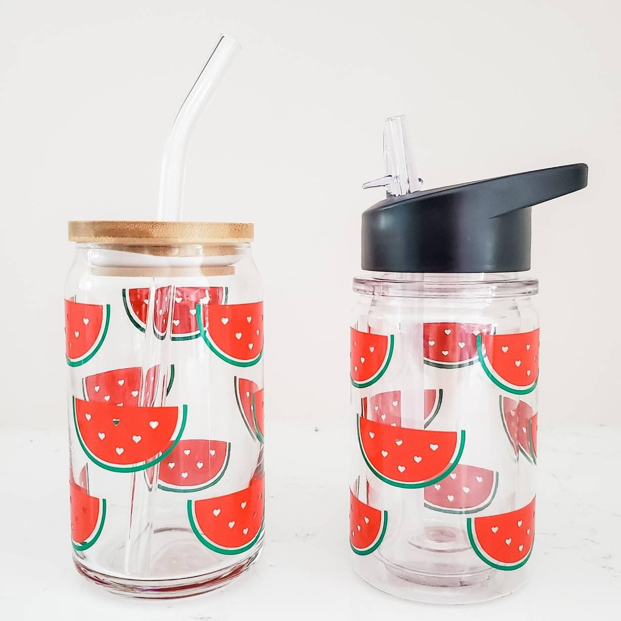 MATCHY MATCHY IS BACK IN and we are here for it! Get yourself a trending fruit beer can glass and get your little sidekick a matching design in a Tritan plastic straw cup. Summer is here and your Instagram feed will thank you for these photo worthy cheerful and trending beer can glasses decorated with your choice of sweet red cherries, strawberries or watermelons, for your perfect summertime cocktail or iced coffee fix - and have some fun doing photoshoots with your mini me - who will be so excited to match with Mommy.