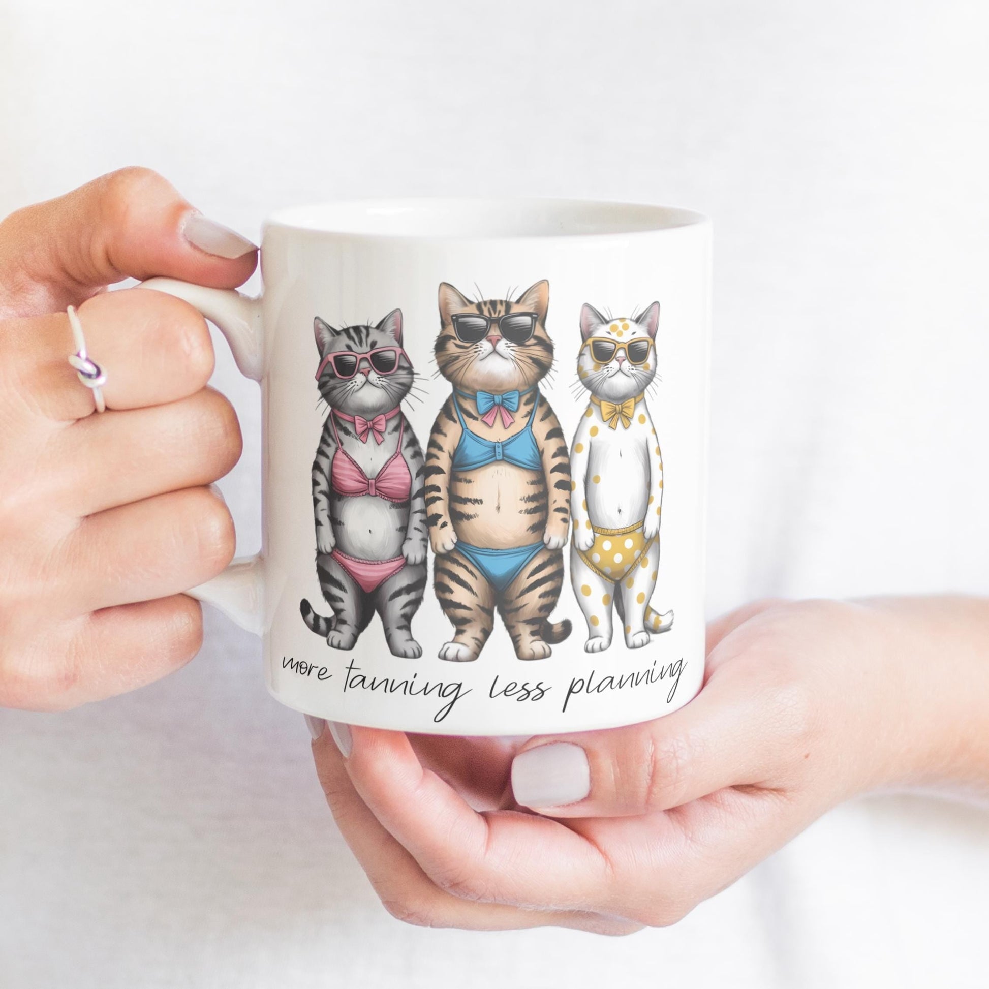 More Tanning Less Planning Funny Teacher Bikini Cats Mug