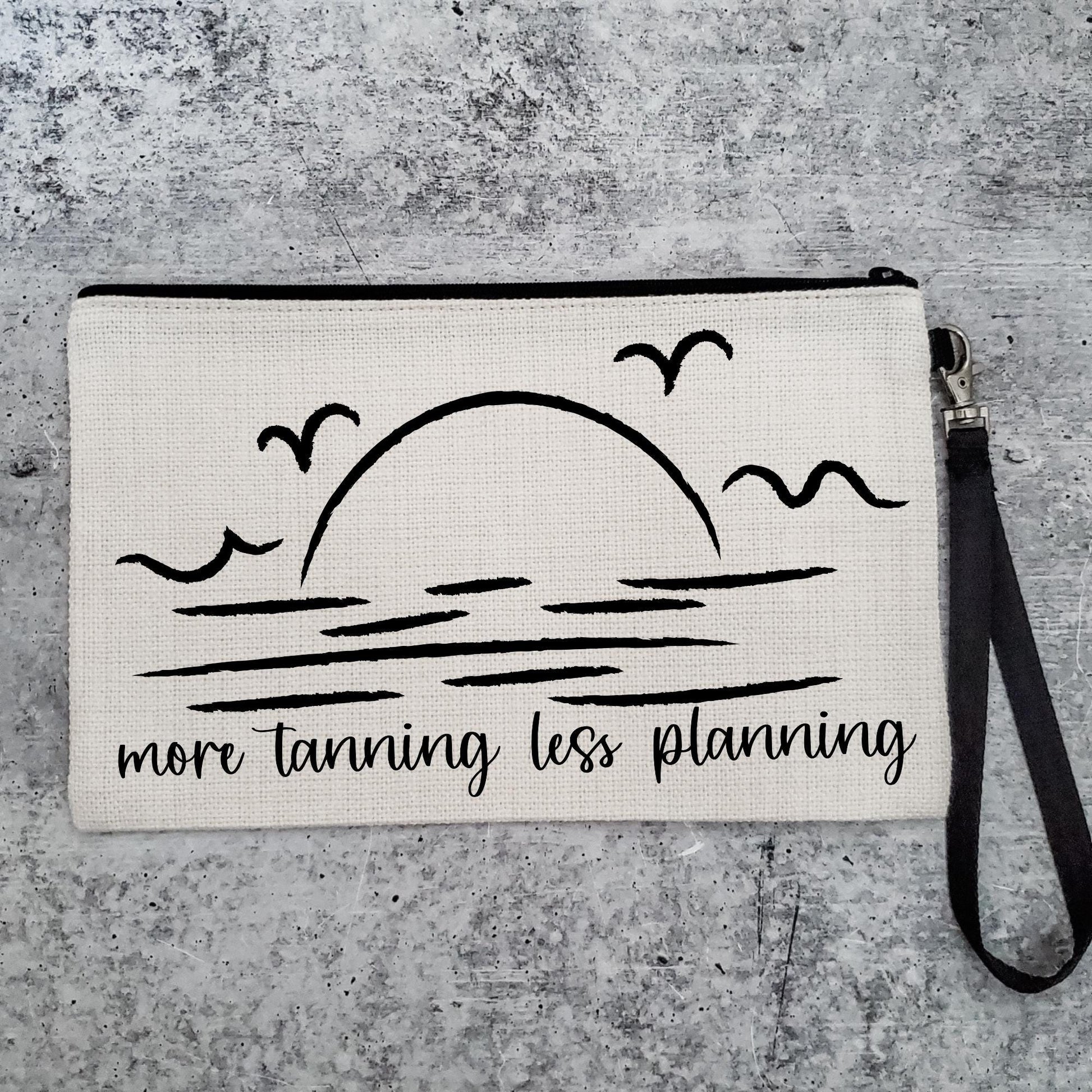 • Text reads "more tanning less planning"