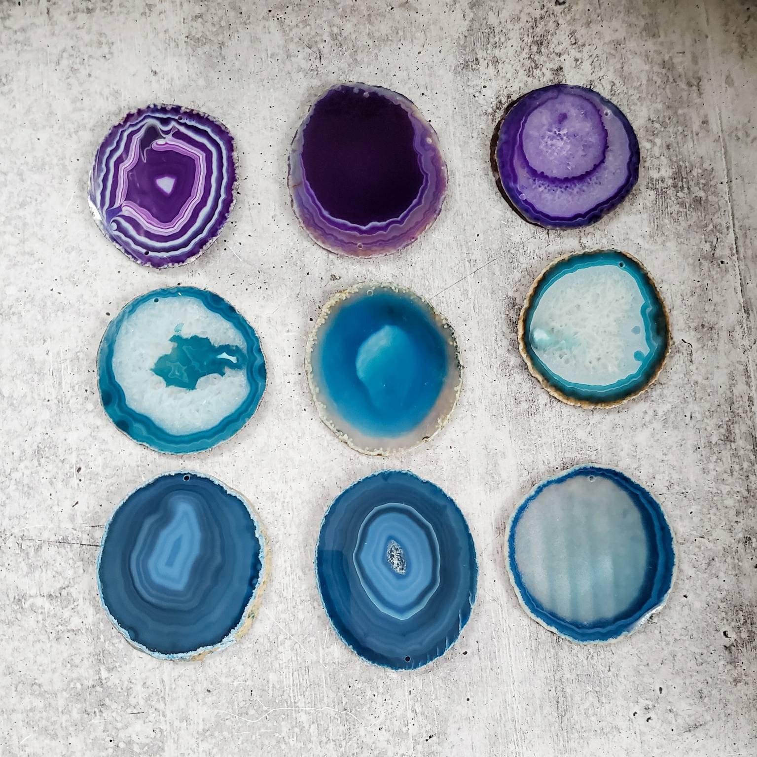 - You can choose between deep blue, turquoise or violet. Each slice is one of a kind and the photos are samples.