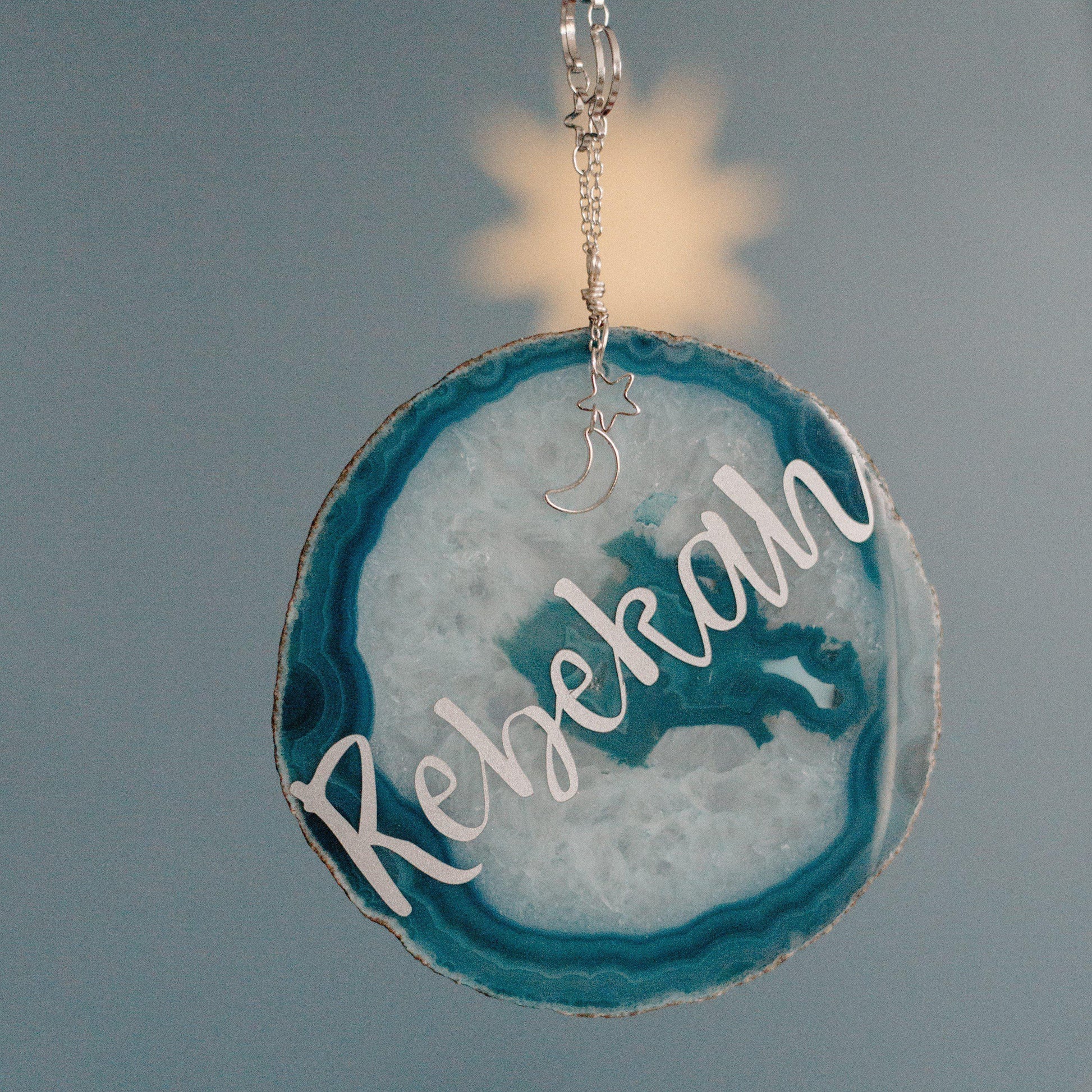 This special celestial wall hanging decor is understated and breathtaking. Your new baby's room needs positive energy and good vibes and this beautiful, one-of-a-kind personalized agate slice is just the accent you are looking for! Your child will cherish this their whole lives and this makes a perfect thoughtful gift for a new parent.