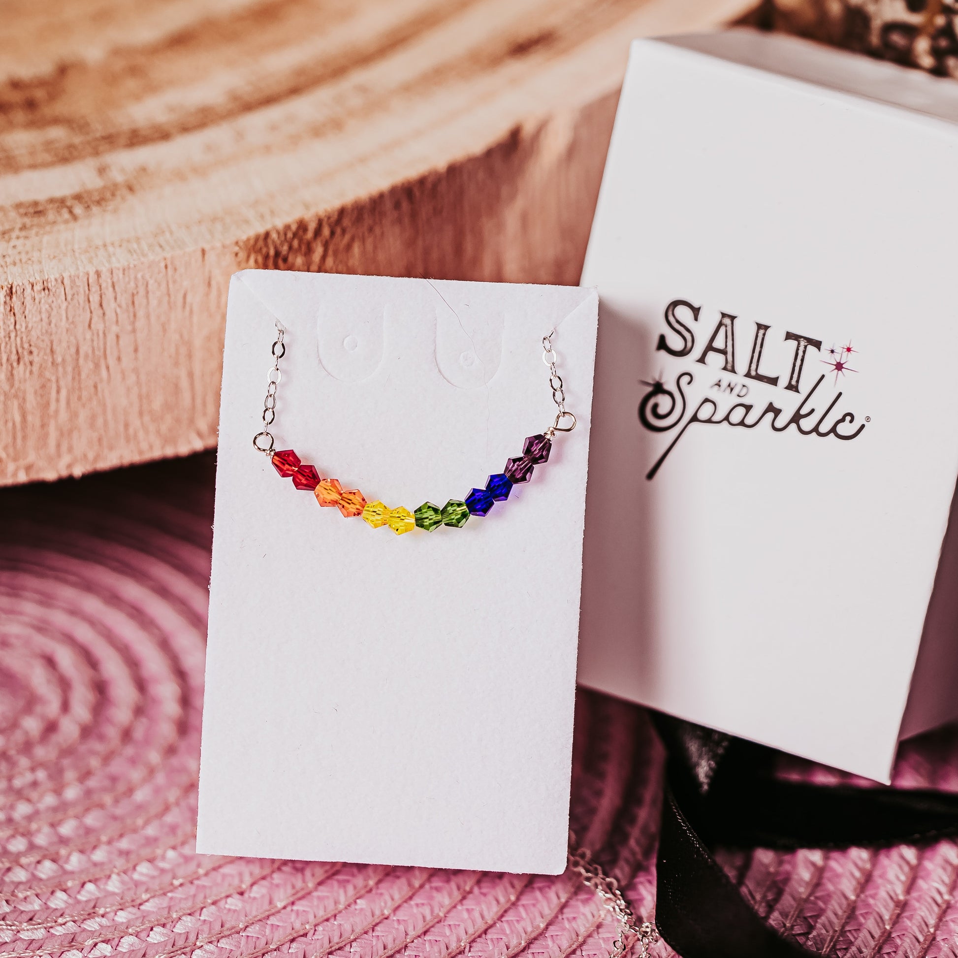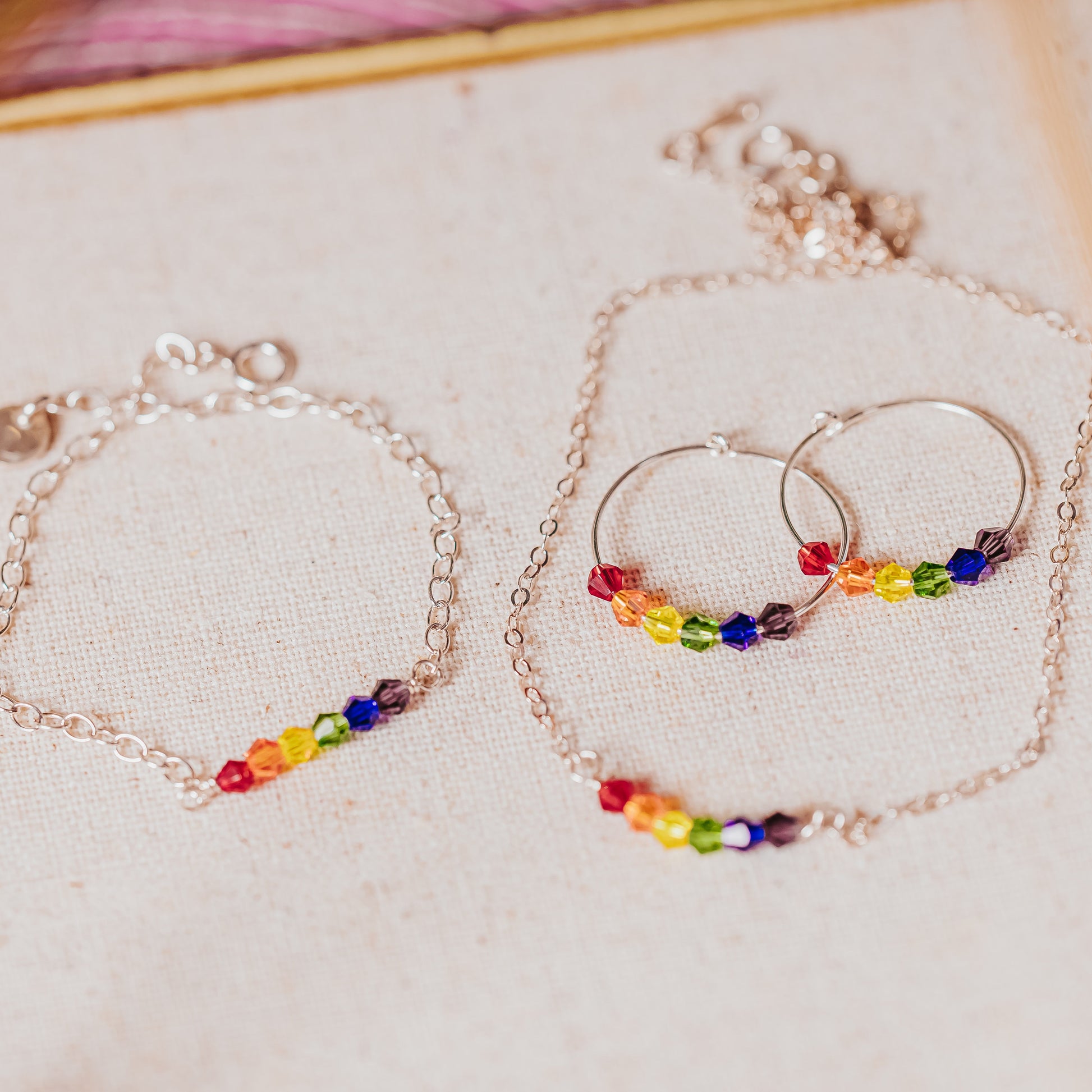 Celebrate Pride with these beautiful rainbow crystal hoop earrings!