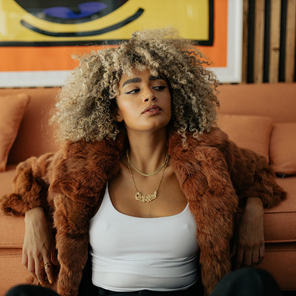 Our popular The Golden Double Plated Heart Name Necklace boasts a chic and elegant design, handcrafted to perfection. The model showcases the necklace with an 18-inch Cuban chain (see video for reference).
