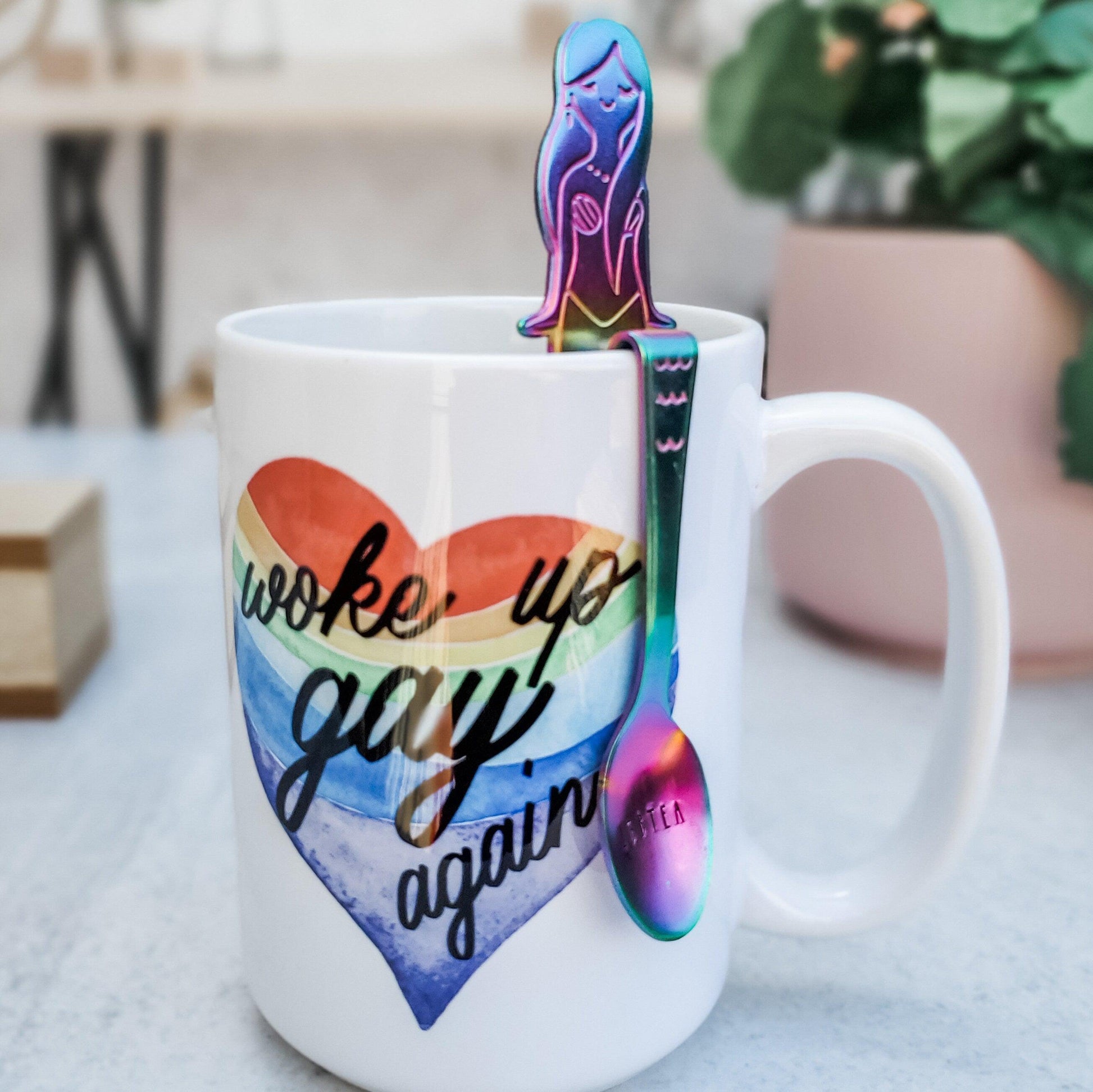 Rise and shine, fabulous soul! Introducing our Woke Up Gay Again Coffee Mug, the perfect companion for those mornings when you are just too irresistible to contain. Sip your favorite brew with pride and let the world know that you woke up ready to slay and spread the love! This cute and colorful mug is here to brighten your day, celebrate your vibrant spirit, and remind you that being true to yourself is always the most fabulous way to start your day. So grab your mug, sip that coffee, and let your gayness shine - because what a surprise - you woke up gay AGAIN!!